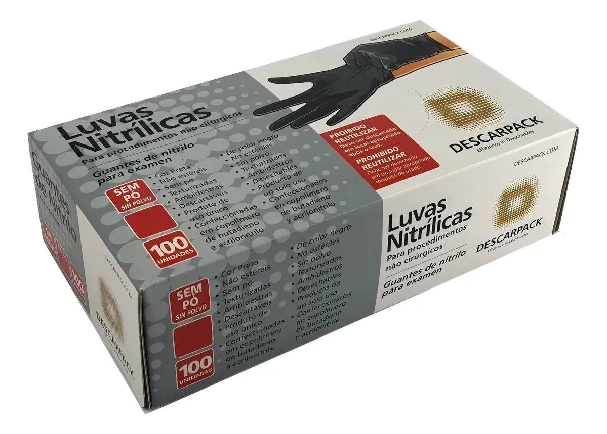 🖤 Luva Nitrílica Preta para Procedimentos Não Cirúrgicos Sem Pó – Descarpack (100 Unidades)
