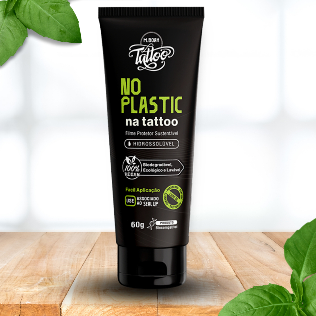O NO PLASTIC é um filme protetor inovador para tatuagens, totalmente sustentável, sem plástico, hidrossolúvel, vegano e biodegradável. Desenvolvido pela MBoah, ele proporciona proteção extra no pós-tatuagem sem agredir o meio ambiente.